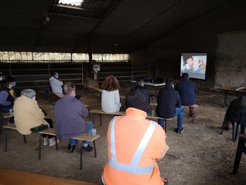 Malgré le contexte sanitaire, une trentaine de personnes sont venues assister à la projection du documentaire "Et si on parlait du travail" de la MSA, issu du travail de l'ergonome Josiane Voisin. Dans le public étaient présents des élèves du lycée agricole Georges Sand d'Yssingeaux, venus volontairement en prenant sur leur temps libre du mercredi après-midi. Ils étaient accompagnés par le directeur de l'établissement et une enseignante, ayant elle-même été agricultrice avant de rejoindre l'éducation nationale.