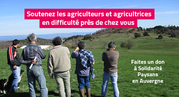 - par chèque en l'envoyant par courrier à Solidarité Paysans En Auvergne, Maison des Paysans, Marmilhat 63370 Lempdes