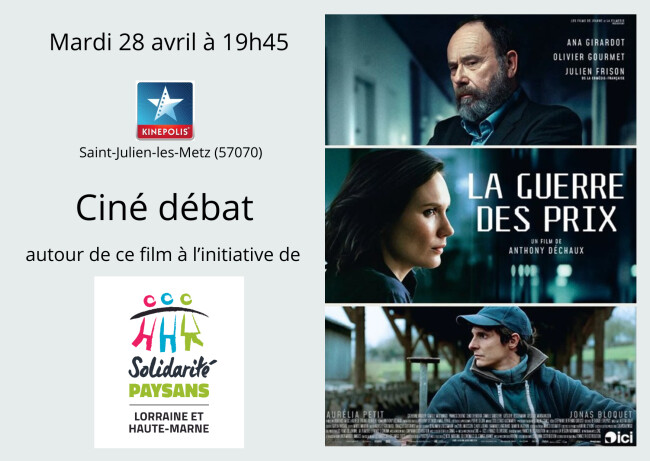 Agenda 28 avril - 19h45 - SAINT JULIEN LES METZ Ciné débat | "La Guerre des prix" | Saint-Julien-Les-MetzMardi 28 avril à 19h45