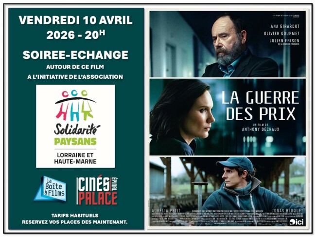 Agenda 10 avril - 20h - EPINAL (88000) Ciné débat | "La Guerre des prix" | EpinalVendredi 10 avril à 20h 18 avril - 15h - RELANGES (88260) Relanges Bio | Conférence sur l'injuste prix de notre alimentationSamedi 18 et dimanche 19 avril Programme PDF