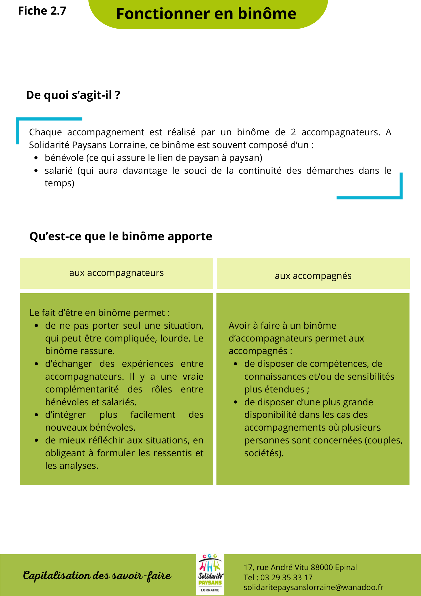 • Fonctionner en binôme