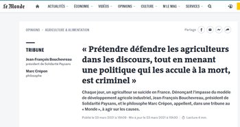 3 suicides d'agriculteurs par semaine en 2010-2011