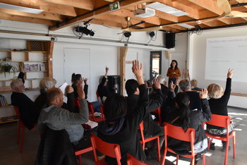Chloé et Marion collaboratrices au Civam de l'Oasis ont animé les ateliers, donnant la parole à l'assistance composée de paysans, de membres des Délégations du Secours Catholique des Ardennes, de membres de l'Association Ardennaise des Diabétiques, d'acteurs locaux œuvrant dans diverses associations.