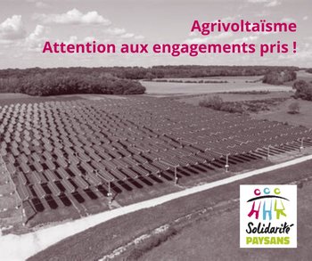 Agrivoltaïsme et photovoltaïque : attention aux engagements pris !Texte à diffuser auprès des agriculteurs et agricultrices