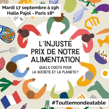 Nous organisons avec le Réseau CIVAM le Secours Catholique-Caritas France et la Fédération Française des Diabétiques une présentation de notre étude "L'injuste prix de notre alimentation" le 17 septembre à 19h à Paris dans l'amphithéâtre de la Halle Pajol (Paris 75018).