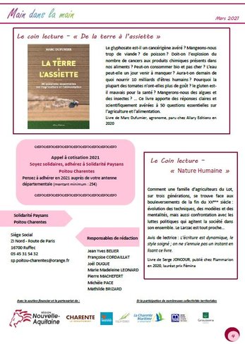 La dernière édition du bulletin de Solidarité Paysans Poitou Charentes vient d'être publiée !