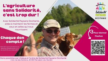 Offrons-leur un avenir et préservons celui de nos territoires et de nos assiettes !Solidarité Paysans Occitanie lance une grande collecte de dons jusqu'au 31/12/2025, avec comme objectif de récolter 30 000 €. Grace à vous, c'est possible !