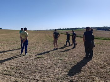 - Le 23 mai: rendez-vous chez d'autres membres du groupe, visite de l'exploitation et questions des exploitants. Cela a été l'occasion d'aborder le choix des espèces et les conditions d'implantation d'une prairie. Des échanges ont eu lieu également sur le stade de fauche et la pousse de l'herbe