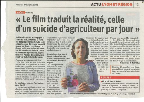 L'occasion pour le Progès du Rhône de faire le point sur le rôle de l'association, et les résonances entre notre activité et ce qui se passe dans le film d'Edouard BERGEON.