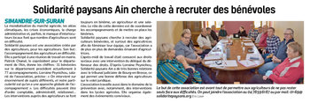 La Voix de l'Ain et Le Progrès : Solidarité Paysans Ain cherche à recruter des bénévoles