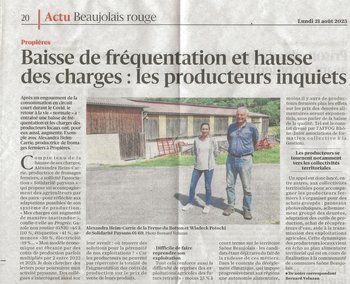 Article du Progrès : "Baisse de fréquentation et hausse des charges ; des producteurs inquiets"