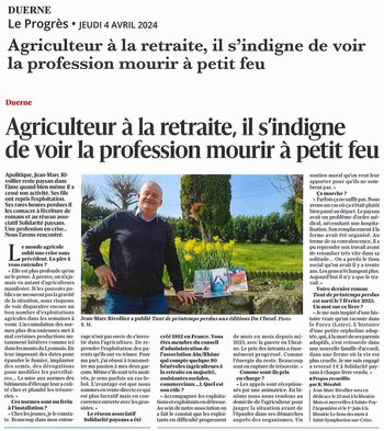 Interview dans Le Progrès : Jean-Marc RIVOLLIER, paysan retraité, bénévole-accompagnateur et écrivain !
