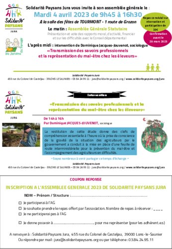 04 avril 2023 : AG de Solidarité Paysans Jura !